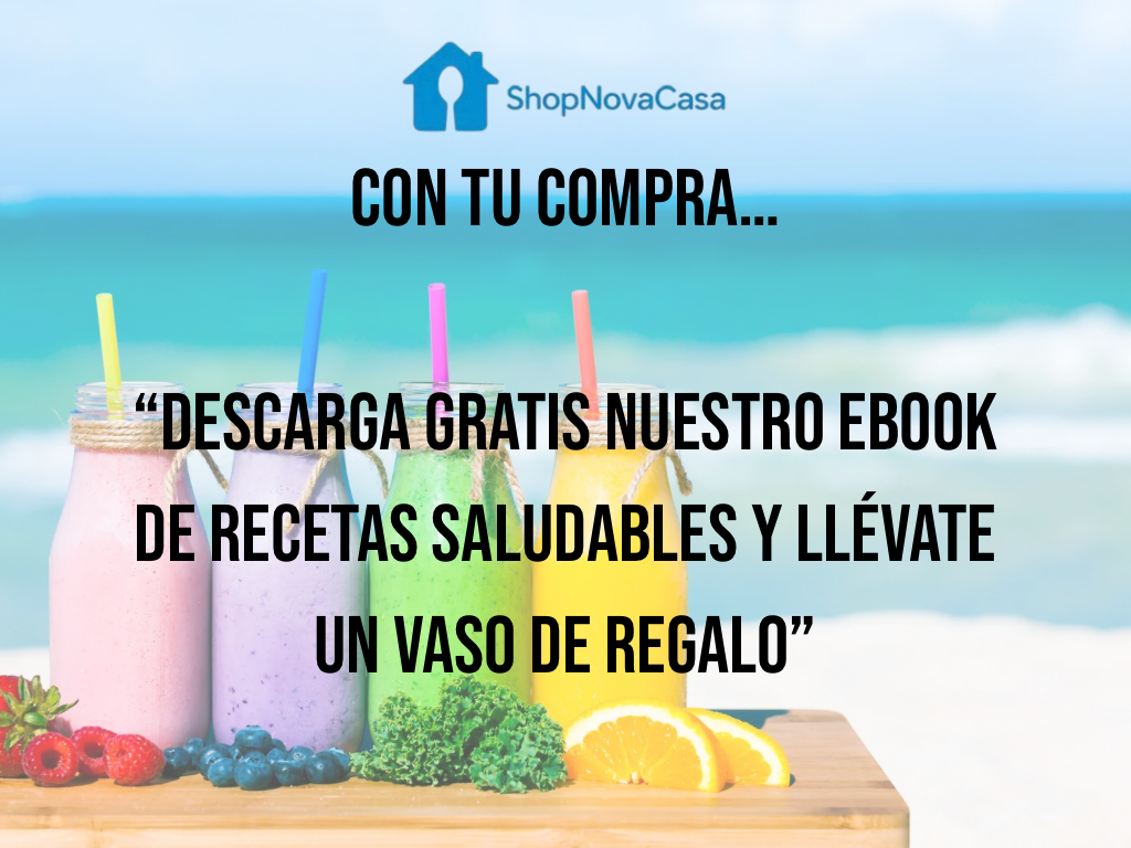 El producto incluye: la batidora, dos vasos de 400ml, un cable USB para recarga y el manual de uso.